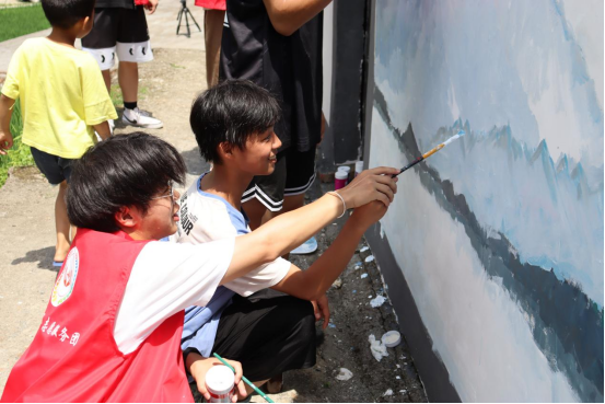 “我们可以一起画吗?”“这样涂色对吗?”铺坪村的小朋友们兴致勃勃。一双双大手扶着小手,一笔一笔绘墙绘的场景,在烈日下分外耀眼。近日,设计艺术学院“设计下乡创意落地”实践团队走进怀化市会同县坪村镇铺坪村开展暑期社会实践活动,大学生志愿者化身“艺术家”,给村里一面面原本单调的墙壁,穿上了色彩斑斓、内容丰富的文化外衣,“画”上了美丽乡村新“妆容”。