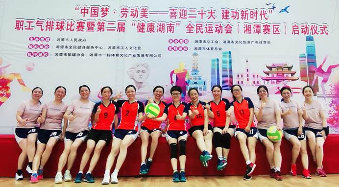 7月9日—10日,市总⼯会和市⽂旅⼴体局联合举办的“中国梦·劳动美——喜迎⼆⼗⼤建功新时代”职⼯⽓排球⽐赛暨第⼆届“健康湖南”全⺠运动会(湘潭赛区)选拔赛在湘潭市体育中心激烈开赛。党委委员、纪委书记齐路良,党委委员、副校长向前前往现场慰问。