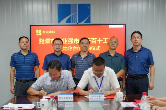 为充分发挥学校和企业在人才资源、科学研究和生产实践的优势,推动产学研合作与科技成果转化,9月8日,党委委员、副校长罗毅平、魏克湘一行赴湖南恒运建筑科技发展有限公司参加湘潭市产业强市“千百十”工程校地企合作签约仪式。