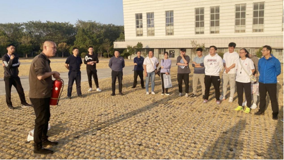 在《条例》学习结束后,保卫处安全科负责人朱亮进行消防安全知识与技能培训。朱亮结合体育馆结构指导参训人员,如发生火灾,馆内钢架结构将有可能坍塌,应组织学生疏散,最佳疏散方式是沿墙角离开。朱亮对逃生技能、干粉灭火器的使用步骤与检查方法进行了详细讲解,还现场点火进行演示,并鼓励参训人员现场操作,以切实增强消防安全技能。