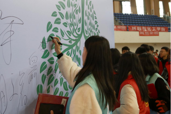 活动现场设置“无核校园”主题签到墙及风采展板向同学们宣传结核防治知识,学校医疗与健康管理科还专门设立了有奖问答、健康知识科普和义诊活动。