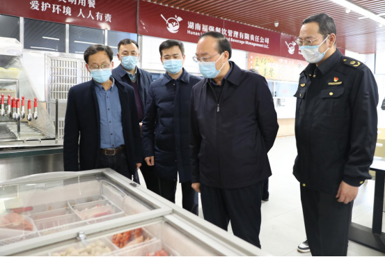 3月29日下午,湖南省湘潭市人大常委会党组成员、副主任蒋立军,湘潭市市场监督管理局党组书记、局长、市委两新工委副书记(兼)赵波,湘潭市岳塘区市场监督管理局局长周刚等一行来365官网开展食品安全督查,党委委员、副校长张小刚及后勤基建处相关负责人陪同检查。