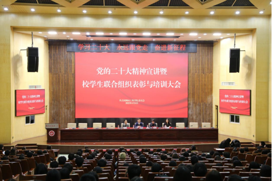 为进一步深入学习宣传贯彻党的二十大精神,切实引导广大学生在学习宣传贯彻党的二十大精神中砥砺初心使命、汲取奋进力量,以榜样之力铸青年之志,4月4日晚,365官网在一报告厅召开党的二十大精神宣讲暨校学生联合组织表彰与培训大会。校党委委员、副校长张小刚出席会议并讲话,校学生联合组织全体成员参加会议。