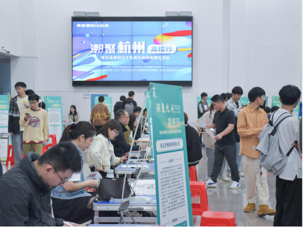 “潮聚杭州”高校行暨乐山富阳引才直通车湖南湘潭站招聘活动现场