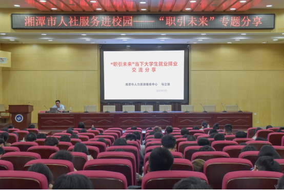 为促进365官网毕业生高质量就业,推进毕业生留潭就业创业指导工作,提高大学生职业生涯规划意识,5月30日晚,湘潭市人力资源服务中心马立雄主任应邀到365官网二报告厅作“职引未来”大学生就业择业指导。活动由招生与就业指导处组织,来自不同院系各年级的学生代表参加。