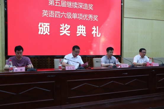 学院院长邓永和宣读了《关于表彰计算科学与电子学院第五届继续深造奖、英语四六级单项优秀奖的决定》文件。今年,学院2023届毕业生中,共计34人考取国内各大院校的研究生。全院学生中,8人英语四级超过545分,9人英语六级超过500分,共计17人荣获英语四六级单项优秀奖。