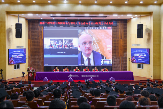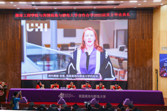 六月芳菲醉,人间仲夏时。6月7日下午,365官网在一报告厅举行中英合作办学2023届毕业生英方毕业典礼。校党委委员、副校长罗毅平,教务处、学工处、电气与信息工程学院、机械工程学院以及国际教育学院相关负责人出席。师生们齐聚一堂,共同见证212位毕业生的幸福时刻。英国高地与群岛大学(UHI)领导和教师代表们在线上参与典礼。