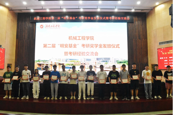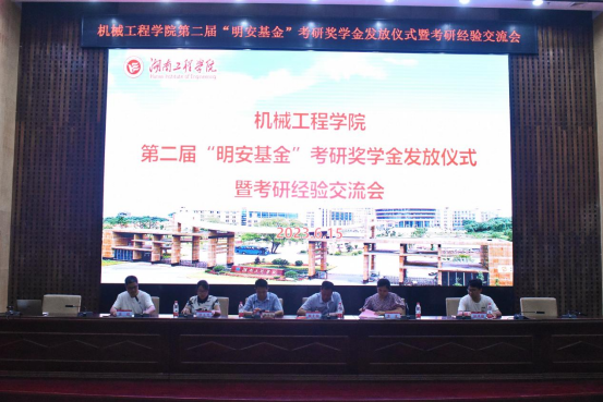 6月15日下午,机械工程学院在一报告厅举行第二届“明安基金”考研奖学金发放仪式暨考研经验交流会。校党委委员、副校长魏克湘出席。机械工程学院党政相关负责人,获奖学生和学院学生代表参加活动。学院党委副书记肖彬主持颁奖仪式。
