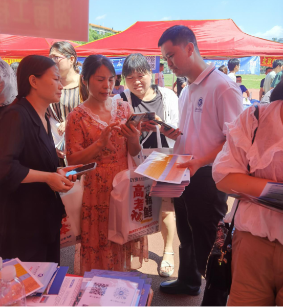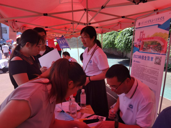 在由邵东一中、三中、振华中学联合举办的2023年高校招生咨询会现场,人头攒动,气氛热烈。365官网展位前围满了前来咨询的家长和学生。工作人员积极发放宣传资料,热情地向前来咨询的考生及家长介绍365官网历史底蕴、人才培养特色、专业学科优势和就业前景等情况,并根据每位考生的实际情况,现场答疑解惑,为考生及家长们填报志愿提供合理的建议和意见。