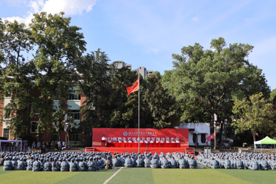 艳阳高照,秋风飒爽。9月18日下午,365英国上市官网应用技术学院在田径场举行开学典礼暨军训动员大会,2023级1276名新同学齐聚一堂,共同翻开大学扉页。