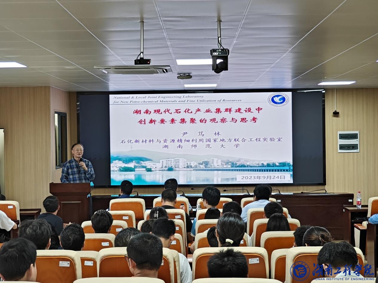 9月28日下午,湖南省政协委员、湖南省教学名师、湖南师范大学精细催化合成研究所所长尹笃林教授来校,在材化楼A301作题为“我们的人生之光从湘潭岳塘增亮——湖南现代石化发展中的观感”专题学术讲座,吸引了材料与化工学院众多师生参加。讲座由材料与化工学院副院长张儒主持。