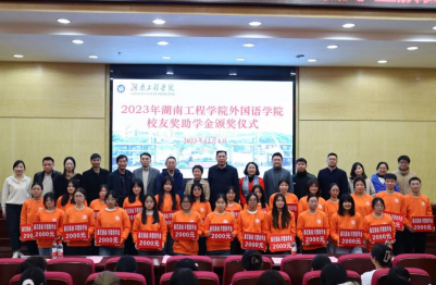 温暖同行显真情,助学筑梦新时代。12月1日下午16:00,外国语学院“越景助学金”“梓萌助学金”“桑尼森迪-洋塑助学金”“腾羽创新创业奖学金”颁发仪式在二报告厅举行。“让我们用自己的心声,感恩自己的校友”,本次仪式在获奖受助学生的诗歌朗诵与歌曲演唱中拉开帷幕,拳拳爱心点燃希望之火。