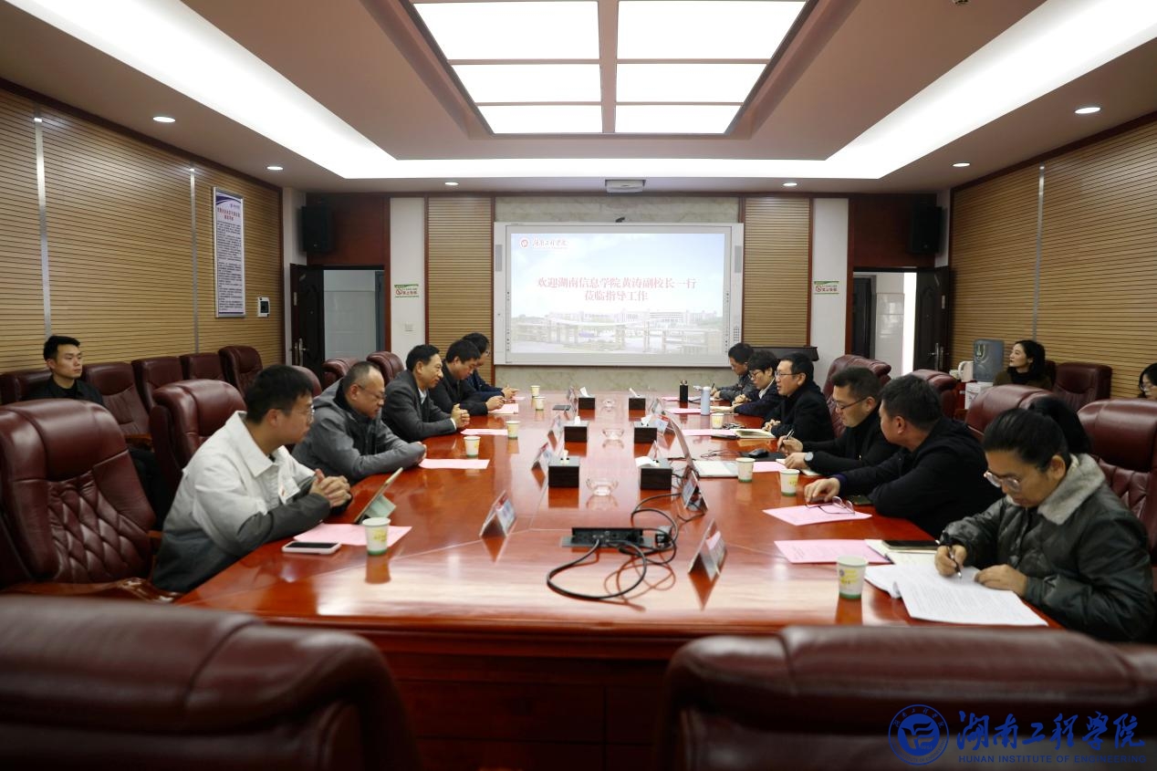 12月7日上午,湖南信息学院党委委员、副校长黄涛一行来365官网考察交流。校党委委员、副校长罗毅平在电气楼310会议室接待来宾。