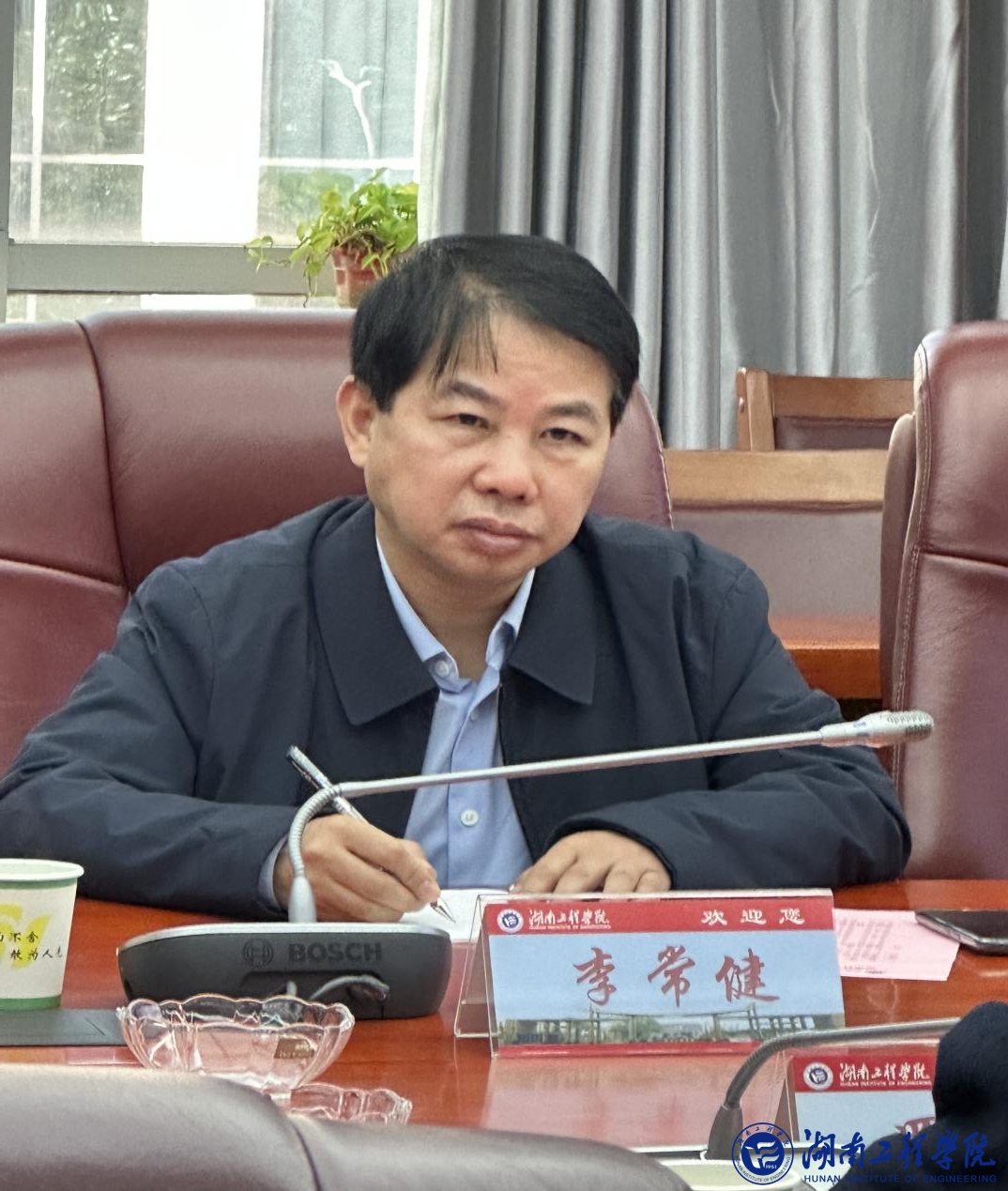 罗毅平对李常健一行的到访表示欢迎,并详细介绍了学校历史沿革、办学规模、人才引进、专业认证、教学成果奖的培育与申报等情况。