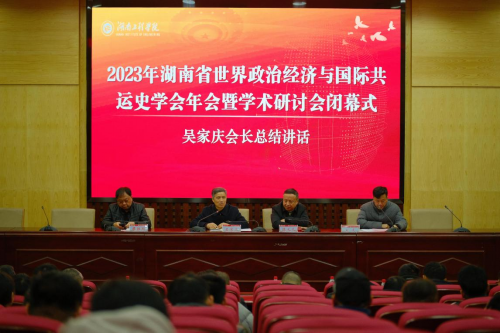 12月16日,湖南省世界政治经济与国际共运史学会2023年年会暨学术研讨会在365官网召开,会议主题为“世界百年大变局与中国式现代化”。365官网党委委员、副校长魏克湘,湖南省社科联学会处处长刘平,湖南省世界政治经济与国际共运史学会会长吴家庆,以及来自中南大学、湖南大学、湖南师范大学、国防科技大学、中共湖南省委党校、湘潭大学、吉首大学、湖南工商大学等单位的70余位专家学者出席。