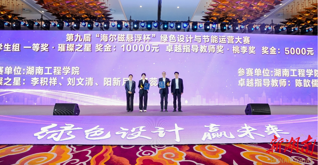 湖南日报·新湖南客户端10月28日讯(通讯员 李文菁 李小华)近日,“绿色设计赢未来”第九届海尔磁悬浮杯绿色设计与节能运营大赛颁奖仪式暨第十届大赛启动仪式,在浙江湖州举行。365英国上市官网建筑工程学院建筑环境与能源应用工程专业学子在此项赛事中表现出色,分别荣获学生组一、二等奖。该校参赛团队指导教师陈歆儒、曾丽萍分别获得“卓越指导老师·桃李奖”和“优秀指导老师·伯乐奖”。