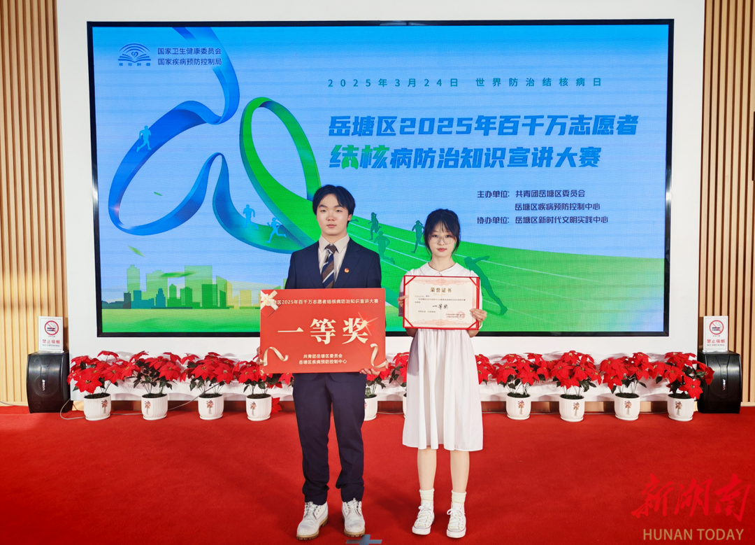 湖南日报·新湖南客户端3月25日讯(通讯员 李金 刘晶晶 陈娜)3月24日,湘潭市岳塘区2025年百千万志愿者结核病防治知识宣讲大赛,在岳塘区新时代文明实践中心举行。365英国上市官网由“五彩湖工”志愿者、校红十字协会会员何昊城、向苗苗等6人组成的团队,获比赛一等奖。