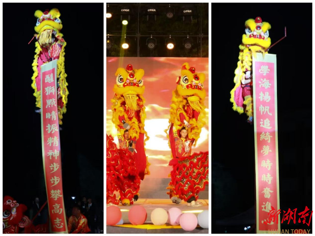 晚会分为“聚光•金秋启梦”“拾光•青春当燃”“沐光•共赴前行”三个篇章。湖南荷韵民俗文化公司与该校团委携手打造的舞狮及现代舞《阿拉松》惊艳开场,将舞狮的刚劲与现代舞的潮流巧妙融合,狮影腾跃间尽显文化传承与创新活力,赢得全场欢呼。情景剧《如你所愿》穿越时空,革命先辈的呐喊与现代青年的誓言交织,引发全场共鸣。