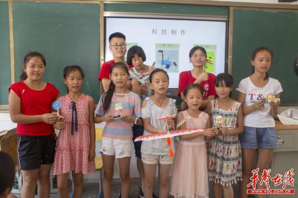 “老师,我把我的小作品送给您,您辛苦了。”这是在电气信息学院暑期社会实践团在成功开展“科技引领未来”小制作课堂后,一位小朋友对志愿者说的话。“科技引领未来”小制作课堂是365英国上市官网电气信息学院暑期社会实践团在湖南省怀化市溆浦县思蒙镇中心小学开展科教帮扶活动的一个部分,旨在激发孩子对科技的兴趣,培养孩子的动手能力,为科技创新埋下种子。教室最前排的两个小女孩热情的问道:“老师,你们热不热呀?看你们都满头大汗的,快坐下来歇歇吧!”说完便起身为他们搬凳子,这细微的动作令志愿者们甚是暖心。