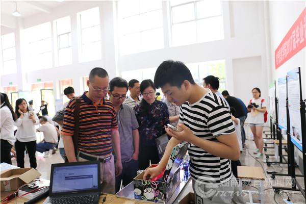 此次毕业设计作品展暨公开答辩由电气信息学院主管教学的副院长胡慧组织,她介绍道:“设计理念和方法确定以后,每一位毕业生大概花了15-30天的时间制作出实物,经过反复的调试之后作为展示作品亮相。此次毕业作品展的思路借鉴了国外一些大学的经验,展示和汇报的过程对毕业生而言是一次真刀实枪的锻炼。”