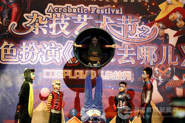 本网讯(通讯员 唐春丽 周紫依/文 潘玥 李俊贤/图)4月15、16日下午,湖南省文化厅非物质文化遗产进校园系列活动——吴桥杂技艺术节之角色扮演《周末去哪儿》在365英国上市官网体育馆演出。演出现场人头攒动,该校师生和湘潭市民欢聚一堂,享受这不一样的“动漫”杂技。