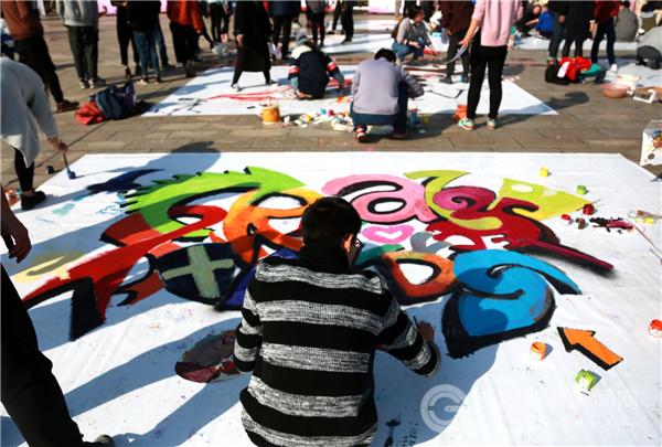 本次举行的防艾系列活动中,防艾主题地面涂鸦大赛和现场涂鸦义卖成为一大亮点。在防艾主题地面涂鸦大赛中,该校每个学院至少派出一支参赛队伍,每支队伍在一张20-30平方米空白喷绘上进行防艾主题现场涂鸦创作,作品将就地展出一周。创作中,设计艺术学院用“撞色”的色彩搭配,形成视觉冲击,令人眼前一亮;在应用技术学院的画板上,一只代表着忧郁的深色手擦拭着流下的泪水,“艾滋令人恐惧,但仍希望全社会能向艾滋病患者伸出关爱的手,擦掉他们脸上悔恨的泪水。”该创作团队的一位同学说到。