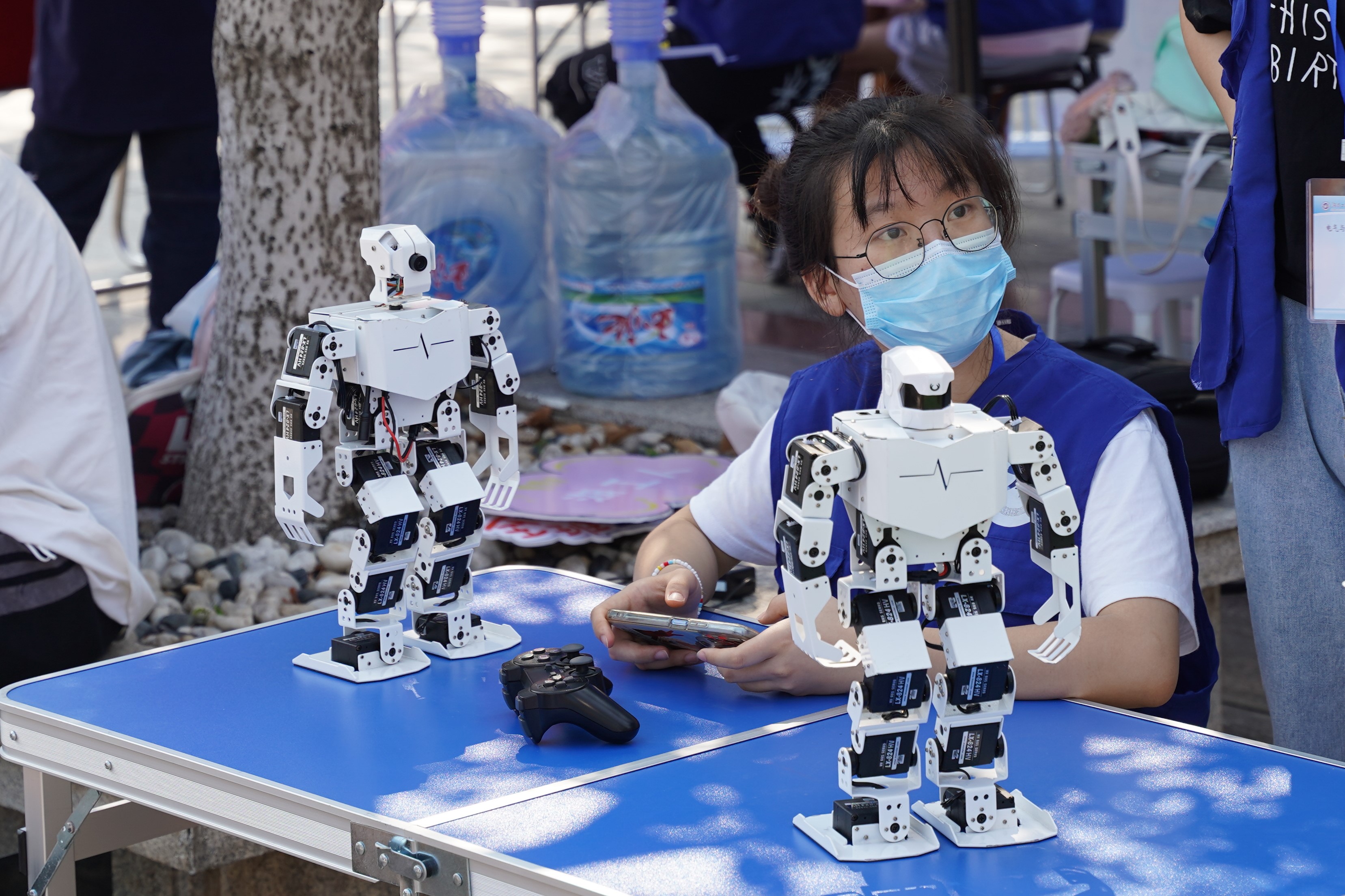 学生操控机器人。陶芊 摄