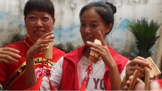 (观察团体验“长沙快板”)