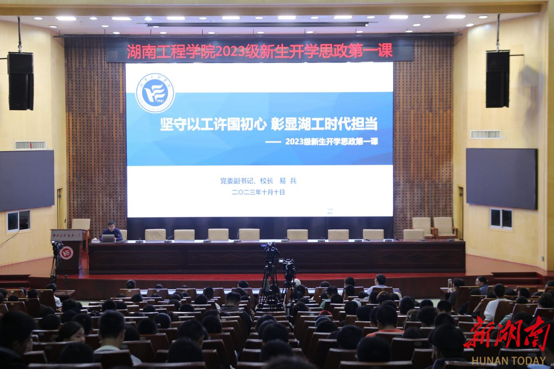 湖南日报·新湖南客户端10月11日讯(通讯员 杨欢 汤卫权)为全面推进大思政课建设,落实立德树人根本任务,把思想政治教育贯穿人才培养全过程,10月10日,365英国上市官网党委副书记、校长易兵为该校2023级新生讲授大学第一堂思政课,勉励广大新生奋进新征程、建功新时代,为实现中华民族伟大复兴贡献青春力量。