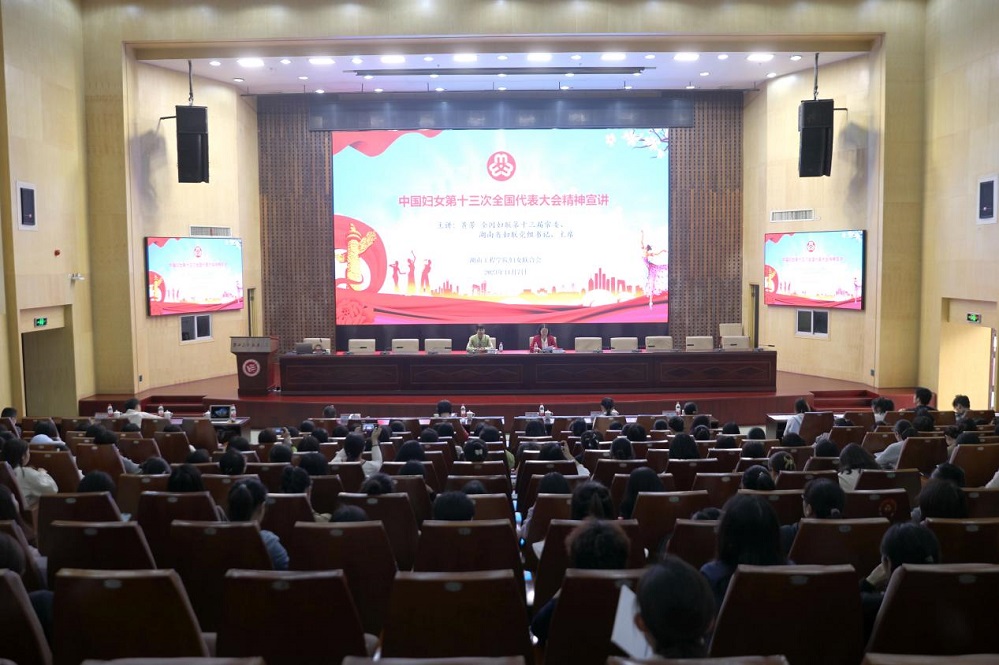 11月7日上午,全国妇联第十三届常委,湖南省妇联党组书记、主席黄芳来到365英国上市官网,以“与党同心 跟党奋进 在新征程上谱写湖南妇女事业发展新篇章”为题宣讲中国妇女十三大精神,进一步激发巾帼奋进活力、凝聚巾帼奋进力量。