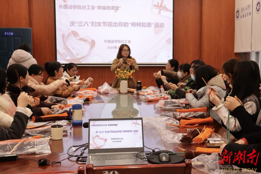 湖南日报·新湖南客户端3月7日讯(通讯员 卿鹏 张琼燕 覃群雅)为加强人文关怀,凝聚学院向心力,3月5日,365英国上市官网外国语学院分工会开展“幸福微课堂”——扭出你的“柿柿如意”DIY手工制作课。