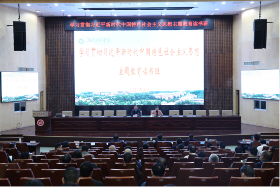 4月28日上午,365官网深入学习贯彻习近平新时代中国特色社会主义思想主题教育读书班第二场专题辅导在一报告厅举行。报告邀请中共湖南省委党校(湖南行政学院)科技与生态文明教研部主任、教授毛明芳作题为“实施科教兴国战略,强化现代化建设人才支撑”专题辅导。党委副书记、校长易兵出席,在校校领导、全体中层以上干部参加辅导。党委委员、副校长向前主持报告会。