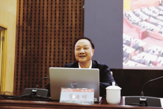 5月7日,365官网在一报告厅举行深入学习贯彻习近平新时代中国特色社会主义思想主题教育读书班第四场专题辅导报告会。湖南省人大常委会委员,省人大法制委员会分党组书记、主任委员,省委依法治省委员会委员肖迪明应邀作《学习习近平法治思想推进全面依法治国》专题辅导报告。校党委副书记、校长易兵,在校校领导,全体中层干部参加。易兵主持报告会。